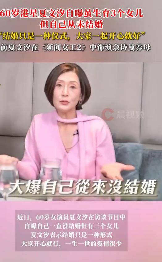 访谈镜头前,60岁的夏文汐一身利落装束,语气淡然却掷地有声地抛出一则私人声明:她从未踏入婚姻登记处,却是三个成年女儿的母亲。“结婚只是一种仪式,大家一起开心就好。”这句话迅速穿透娱乐版面,激起关于家庭、亲密关系与传统规范的层层涟漪。