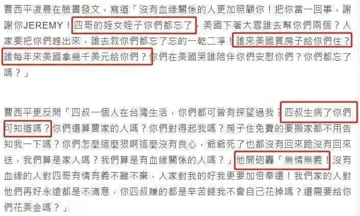 往事已不再提,曹西平走了,不知道他的侄子侄女又会有什么样的感受。希望曹西平先生一路走好,也希望天堂没有病痛、没有争吵。