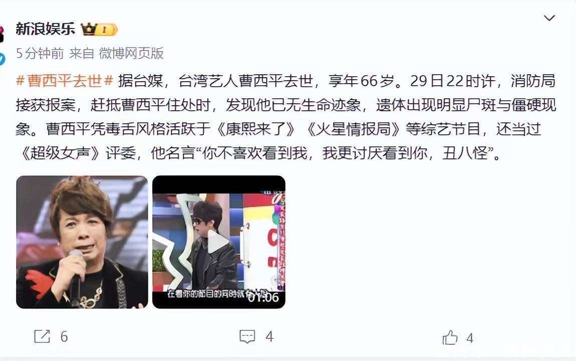 很难想象,66岁的男演员曹西平独自一人在家去世,甚至死了很长时间才被发现。曹西平这一生没有结婚,也没有孩子,身边没有亲人。唯一可以算作亲人的,是三哥的前妻。他供养的侄子侄女更是对他不闻不问。