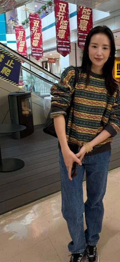 这次网友偶遇她的时候,她穿了件浅色毛衣配牛仔裤👖。