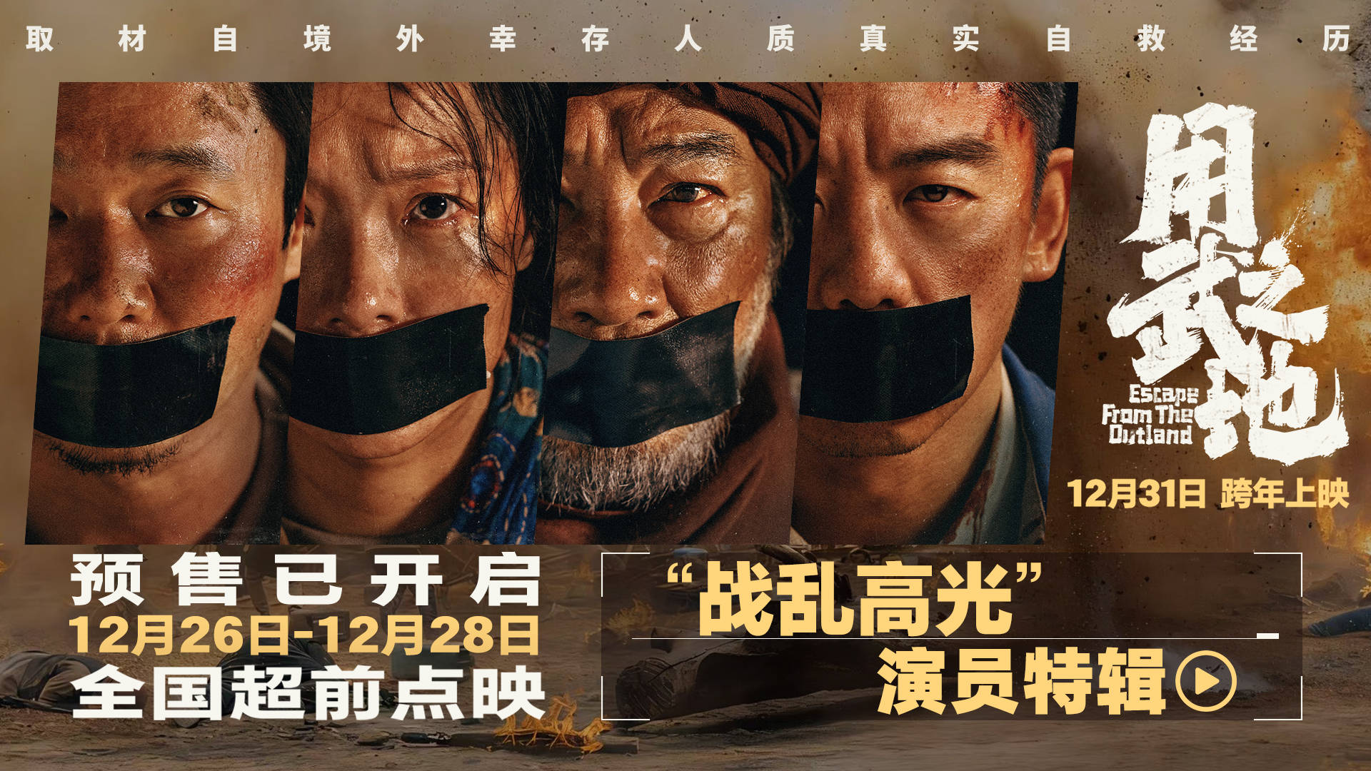 由宁浩监制,申奥执导,申奥、许渌洋编剧,肖央、『齐溪』、任达华、『郑恺』领衔主演的电影《用武之地》今日公映,直击战乱地区残酷硝烟,揭秘极端组织恐怖内幕,一段境外人质极限自救逃生的冒险正式开启!影片全国路演持续进行中,在刚刚结束的深圳、广州两站路演,主创现身映后交流,面对面聆听观众新鲜出炉的观影感受。惊险刺激的逃亡之路让观众沉浸其中,直呼“两个小时没看一眼手机”;片尾曲《Amani》也打动了不少观众,感叹“前半段震撼到说不出话,Beyond的歌声一响起又忍不住想要落泪”。许多观众更是认证影片“跨年最佳”“元旦必看”,自发力荐给身边的亲友,相约元旦假期观影。