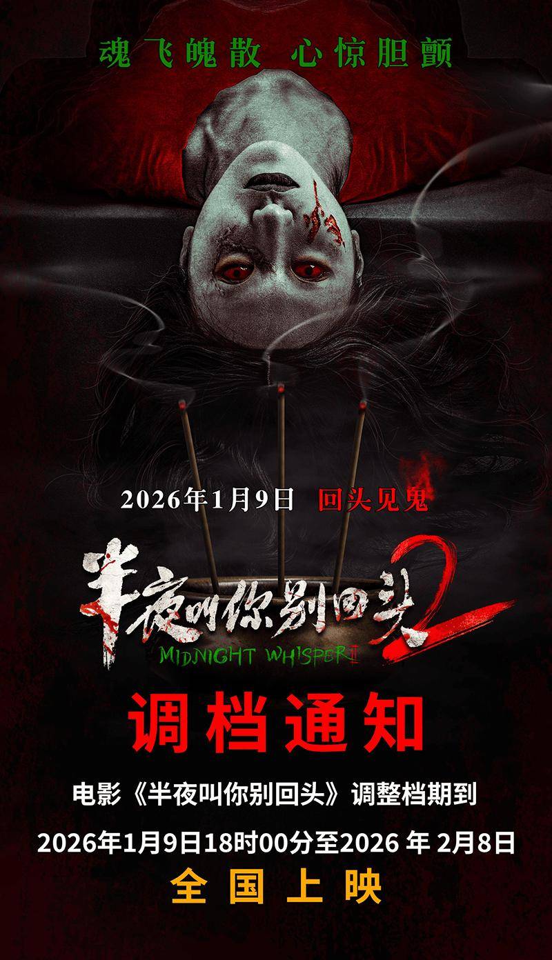 《半夜叫你别回头2》由山西菲尔幕影视文化有限公司出品,浙江东阳四月天影视文化有限公司宣传发行。提档1月9日,精准对接寒假年轻受众与情侣约会观影需求。影院沉浸式音效放大阴风呼啸、凄厉惨叫,让观众在尖叫与相拥中释放压力,成为午夜场观影的专属类型。影片提档上映,承包年轻群体社交热议话题,提前点燃惊悚观影热潮!