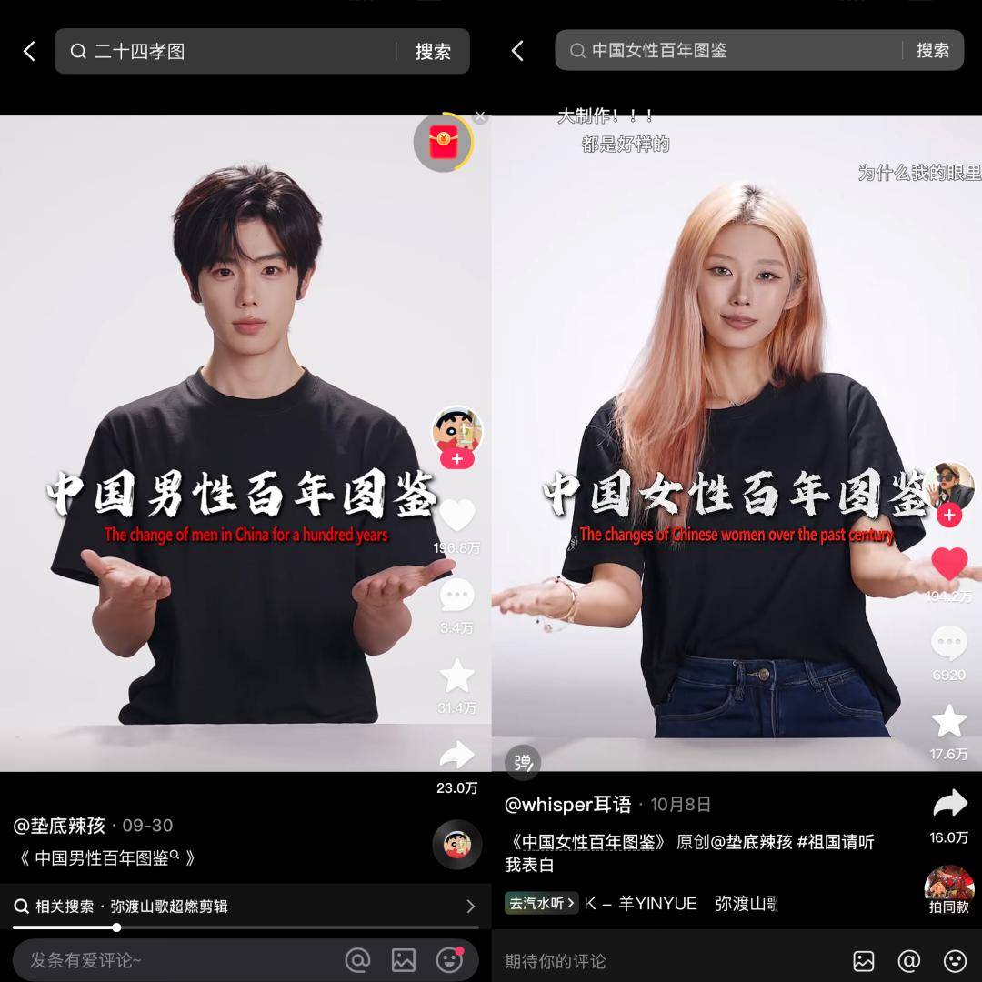 同时,用户自发创作的 “中华男儿百年衣冠图鉴”、 “中华女性♀️百年衣冠图鉴”等内容爆火,将歌曲与历史文化、服饰美学结合,实现了从娱乐传播到文化传播的升级。