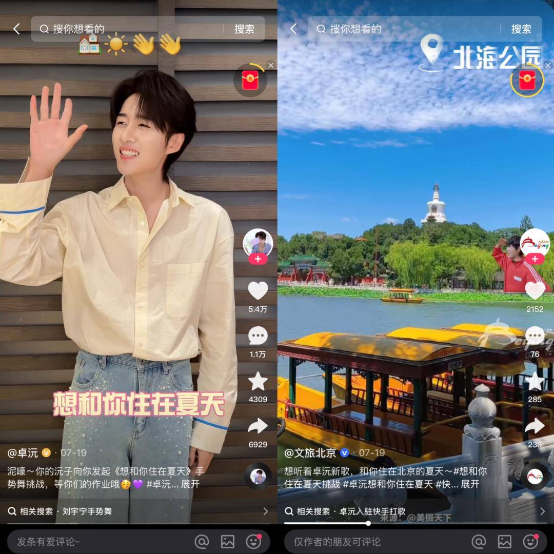以横向运营为例,其着力打破场景边界,让歌曲热度实现跨领域扩散。例如,为歌手卓沅量身打造的《想和你住在夏天》,联动各地文旅打造 #各地文旅都想住在夏天 热点,登上快手热榜第 10 位,上榜流媒体热榜超20次,促成了一次成功的事件型歌曲宣发联动。