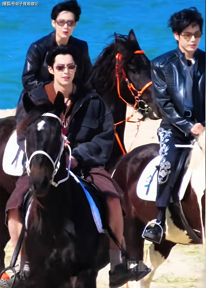 骑马的时候大家都穿着黑色的皮衣,『檀健次』帅气得充分展现出成熟男士的韵味,『王鹤棣』却不穿皮衣,反而更有少年那股感觉。