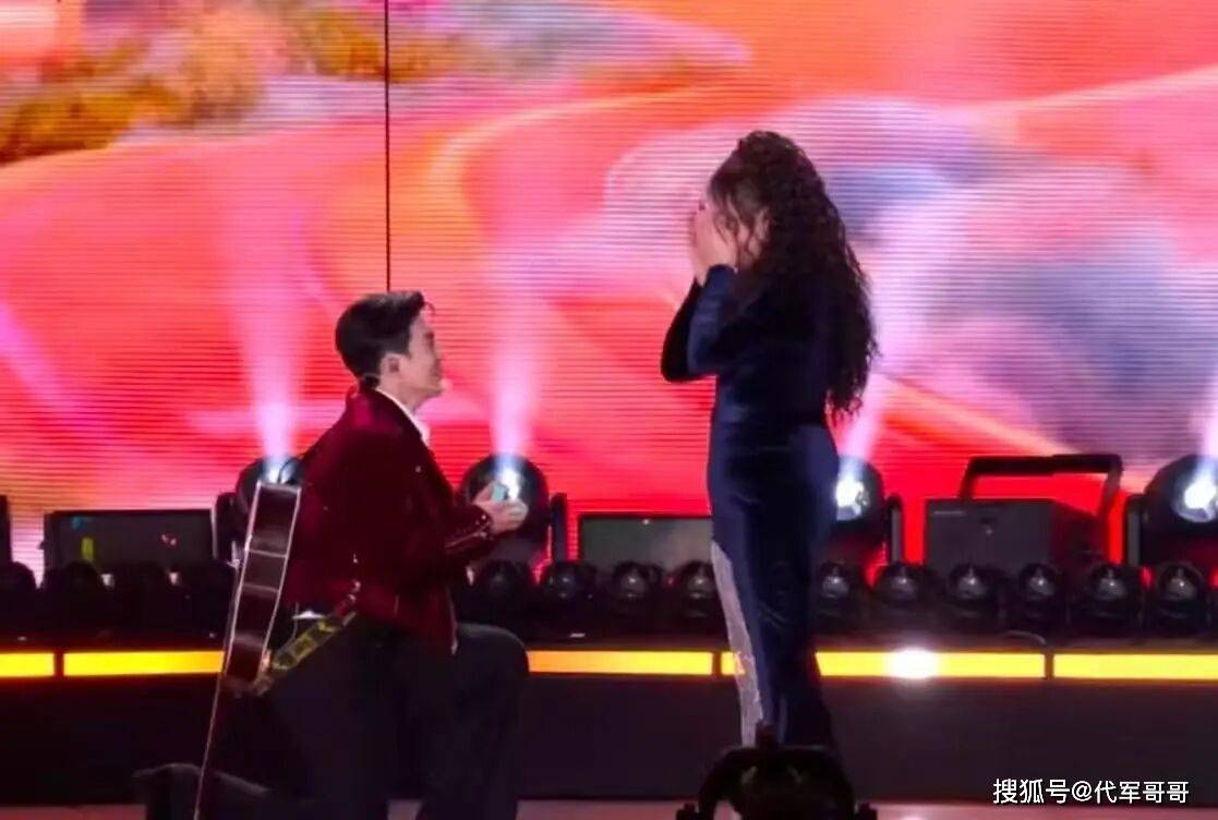 当晚的求婚环节充满了真实又戳人的细节。李川与锤娜丽莎完成经典曲目《我的心里只有你没有他》的合唱后,并未按流程退场,而是突然示意主持人暂停,抱起吉他清唱锤娜丽莎最爱的《夏洛特烦恼》片段。唱至动情处,他放下吉他单膝跪地,身后一辆装饰着暖光灯带的汽车缓缓驶入舞台,前备箱打开的瞬间,层层叠叠的玫瑰花海惊艳全场。