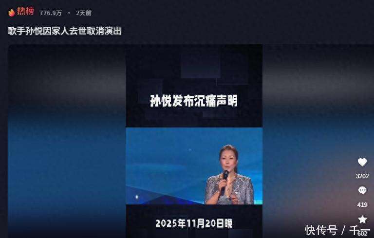 11月20日晚,歌手孙悦通过『社交媒体』发布了一个令人心碎的消息。她在微博上表示,家里的公公突然去世,原本计划好的演出也只能取消,她向大家表示了歉意。她附上的照片中,两只手紧紧相握,仿佛在无声地传递着温暖和支持。