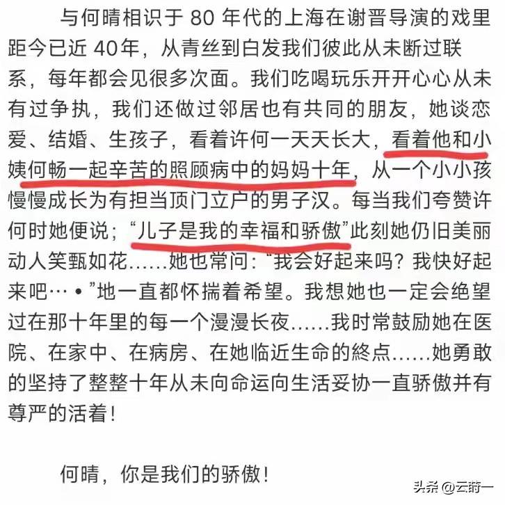 文|晓得编辑|晓得 葬礼那天,雪花漫天飞舞,何晴却未曾看见。然而,许何望向天空的目光,仿佛替母亲把整个冬天的洁白都收藏了起来。说实话,以前总以为星二代这个标签意味着光环加身,直到看见许何,才知道光环下也有沉重的生活。