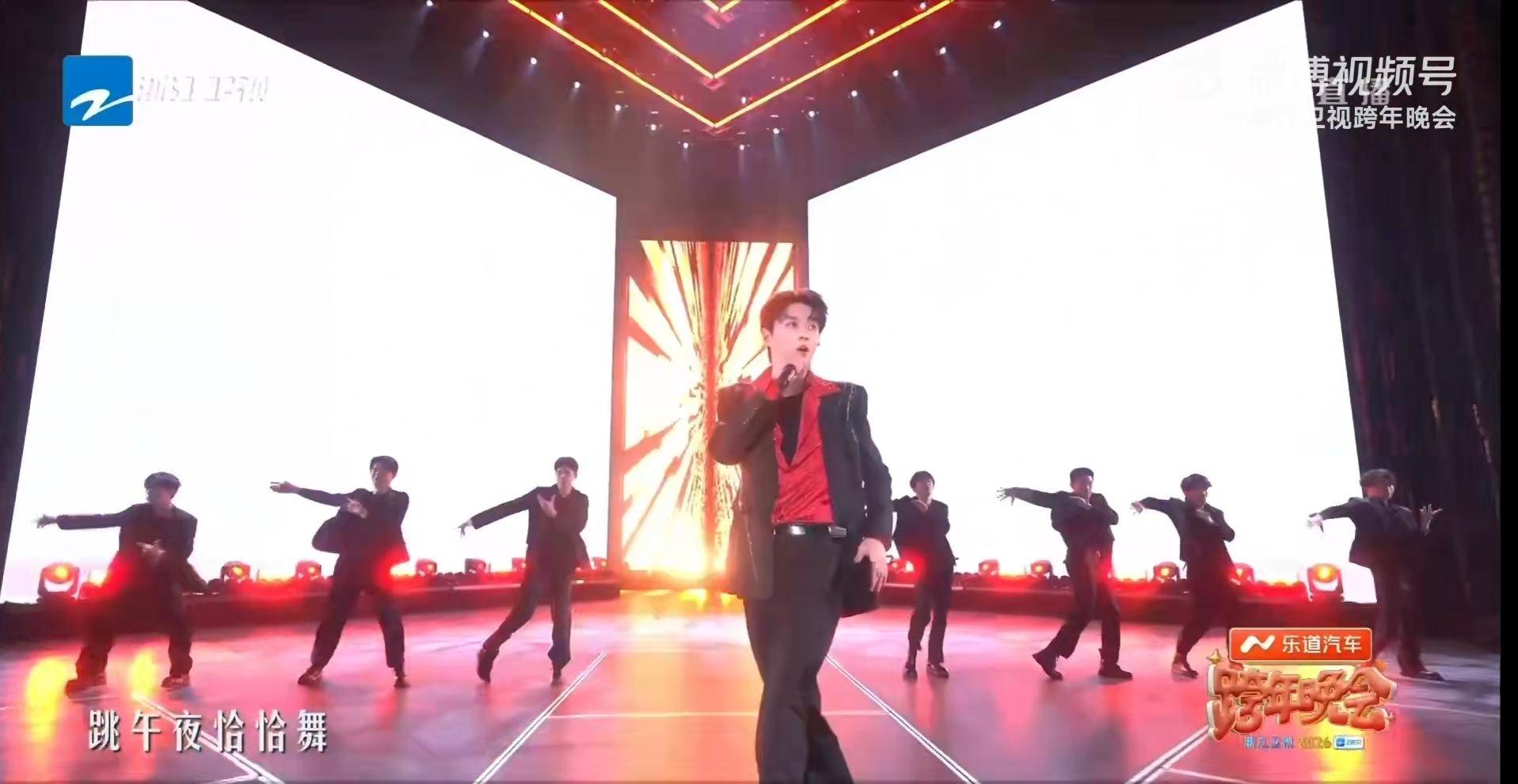 另一边的浙江卫视跨年晚会上,凭借爆款微短剧《好一个乖乖女》走红的柯淳迎来个人跨年夜首秀,以红色衬衣搭配黑色西服的造型,献唱了动感十足的《午夜恰恰》。