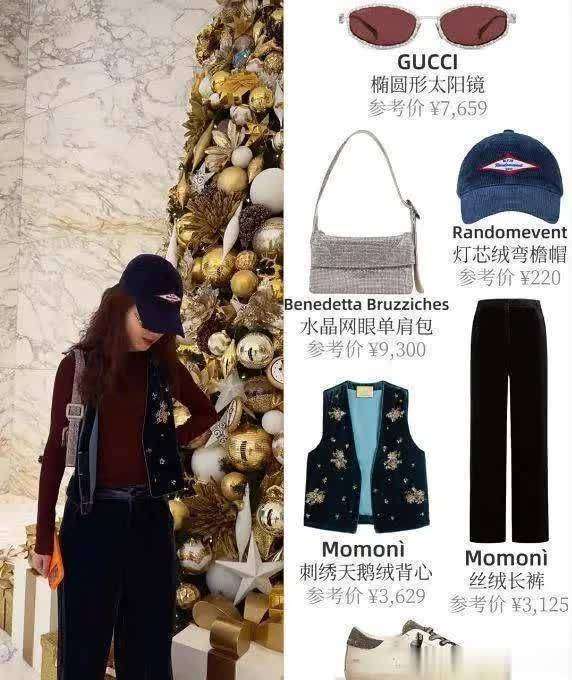 章泽天还分享了与酒店圣诞树的合影,并展示了餐盘上的苹果甜点、雪花酥、小雪人巧克力,还有餐盘旁的鹿摆件,整个场景充满了浓浓的圣诞节氛围。