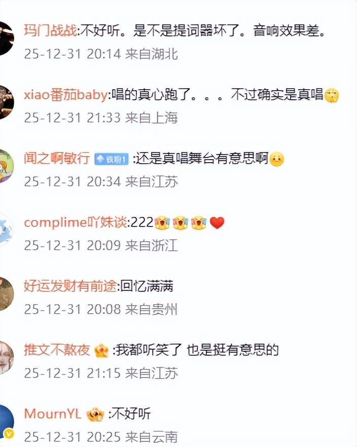 观众不光原谅了他偶尔的破音,反而一句话刷屏:“这才是跨年晚会的诚意。”