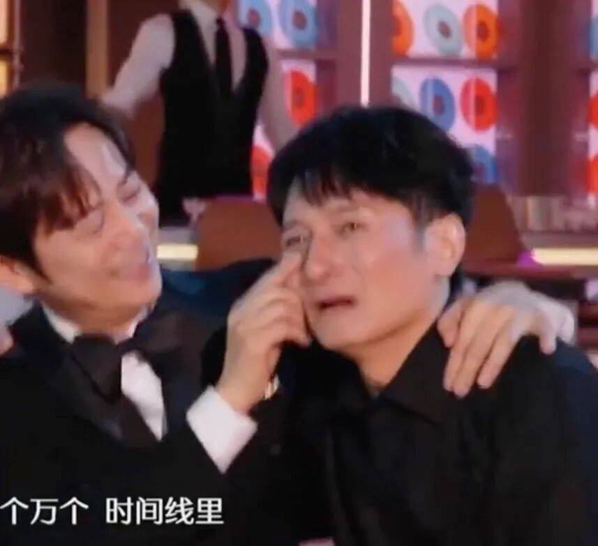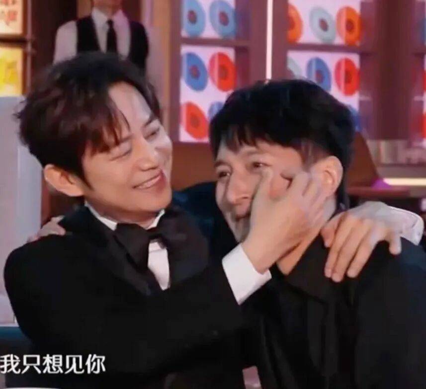 这次终于跟『何炅』一起站在熟悉的舞台,他破防了。《想见你》响起时,他哭到眼妆都花了。『何炅』一边搂着他,一边默默帮他擦眼泪。