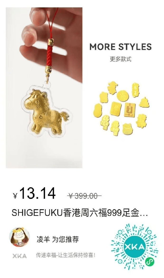 这款小金马是平台福利价、让利款。博主佣金最高就一块八,还要扣税,我是真心觉得划算,才推给大家的哈。是足金,但不是克,是毫克,只能当手机小挂件使用,比别的地儿便。,快过年了,过年当个手机挂件也不错,找个好意头:马上有钱。微信扫码可购。