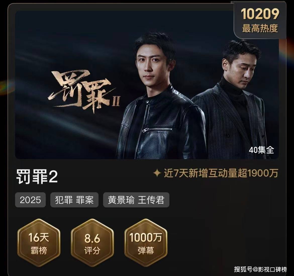 『黄景瑜』、『王传君』主演的《罚罪2》热度值破万,该剧也是爱奇艺2026年首部破万的作品,观众反响也不错,再加上今日霍州等主流媒体的深入报道,进一步引爆公众关注,热度与口碑的双线飙升,《罚罪2》也在全网范围内再度掀起了新一轮的追剧狂潮。