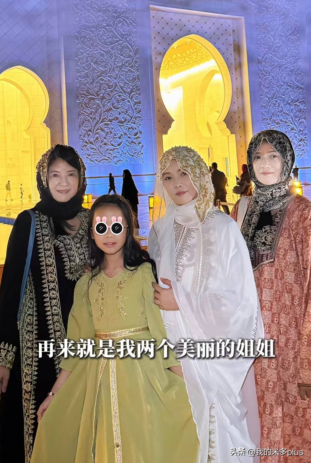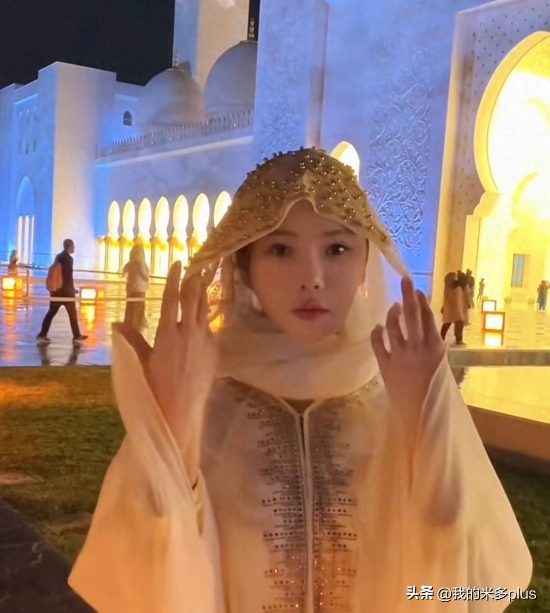 『伊能静』最近持续更新她在迪拜的旅行vlog,9号晚上,她们全家来到了清真寺。一开始,大家几乎认不出她,因为她换上了当地特色的服装,整个人散发着优雅而温柔的气息,特别是在灯光的衬托下,显得年轻了许多。