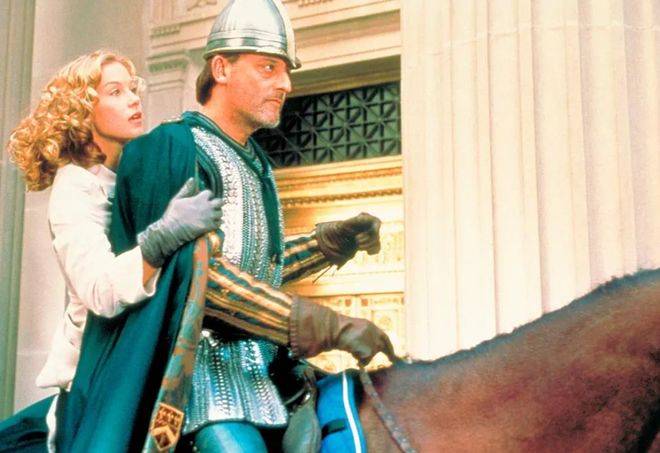 《时空访客》里让·雷诺完全颠覆形象,不再演硬汉,而是成了穿越到现代的中世纪贵族,那夸张又搞笑的表演,简直绝了!