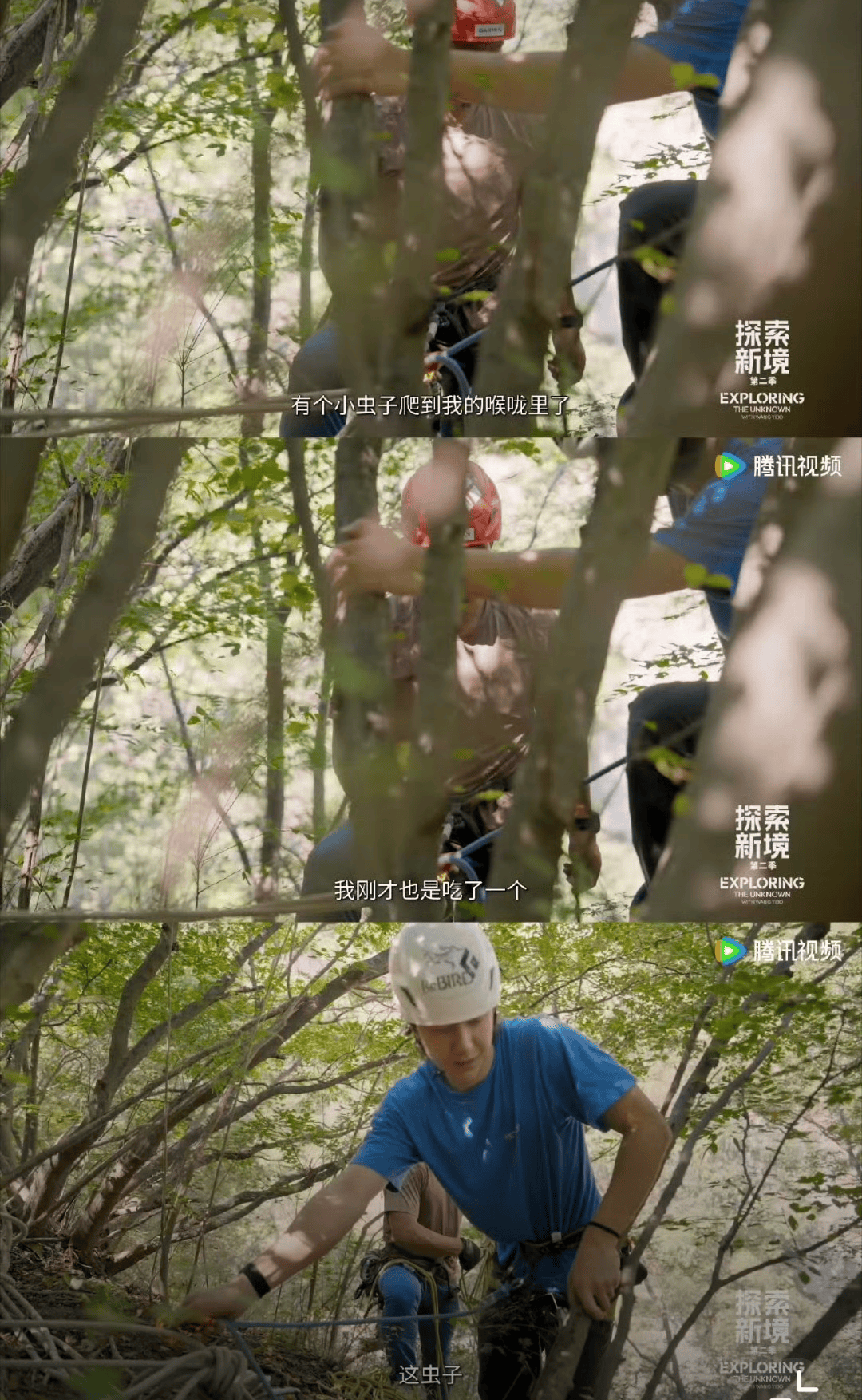 在《探索新境2》的攀岩特辑里,『王一博』和搭档周鹏在北京白河搭建溜索。结果,周鹏突然被喉咙里的小虫呛到,咳嗽得那叫一个撕心裂肺。本以为『王一博』会立刻化身“暖男”,递水拍背安慰,结果他淡定地来了一句:“我刚才也吃了一只。”说完还轻轻叹了口气,仿佛在说:“这虫子,也就那样吧。”