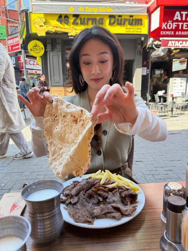 这组动态中的刘美含,失去了镜头前的那份娇俏和雀跃,却带着一种在异乡遇见熟悉感的温暖。从日落和江景的撞击,到街头美食和巷弄的香气,再到建筑与坡巷的相似,她把土耳其的日常呈现成了重庆的另一种模样。那句像重庆并不是随意的感叹,而是她在看到这些熟悉的景象时,脑海中不自觉地浮现的家乡记忆——连她的松弛,仿佛也在土耳其的巷弄里,感受到了重庆那种本该如此的自然与自在。