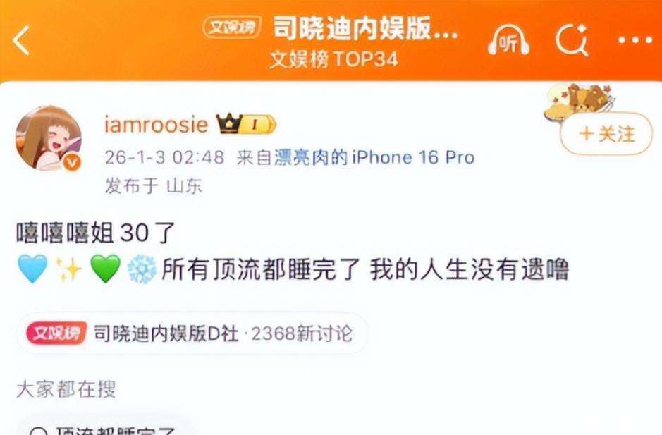 2026年刚刚开始,『娱乐圈』️再次成为了舆论的焦点。网红司晓迪的一句30岁前睡遍顶流,一时间引发了全网的热议。起初,大家都认为这不过是为了博取流量的无聊言论,但没过多久,一位女演员素颜现身并哽咽着讲述了自己在拍戏时的遭遇,这才让人们意识到,原来这不是单纯的炒作,而是揭开了许多人在『娱乐圈』️中不为人知的丑陋真相。