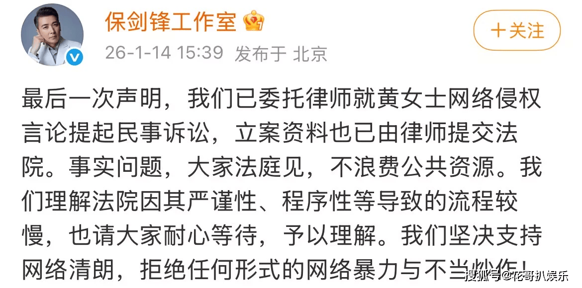 面对指控,保剑锋丝毫不见愧疚之意,只让工作室出面回应,说是要起诉黄慧颐,和她法庭见,起诉前妻,保剑锋也算是内娱头一遭了。更让人不齿的是,为了洗白,保剑锋团队还出动水军,抹黑黄慧颐居心不良、蹭热度直播带货、碰瓷前任,试图将受害者塑造成别有用心的炒作咖。