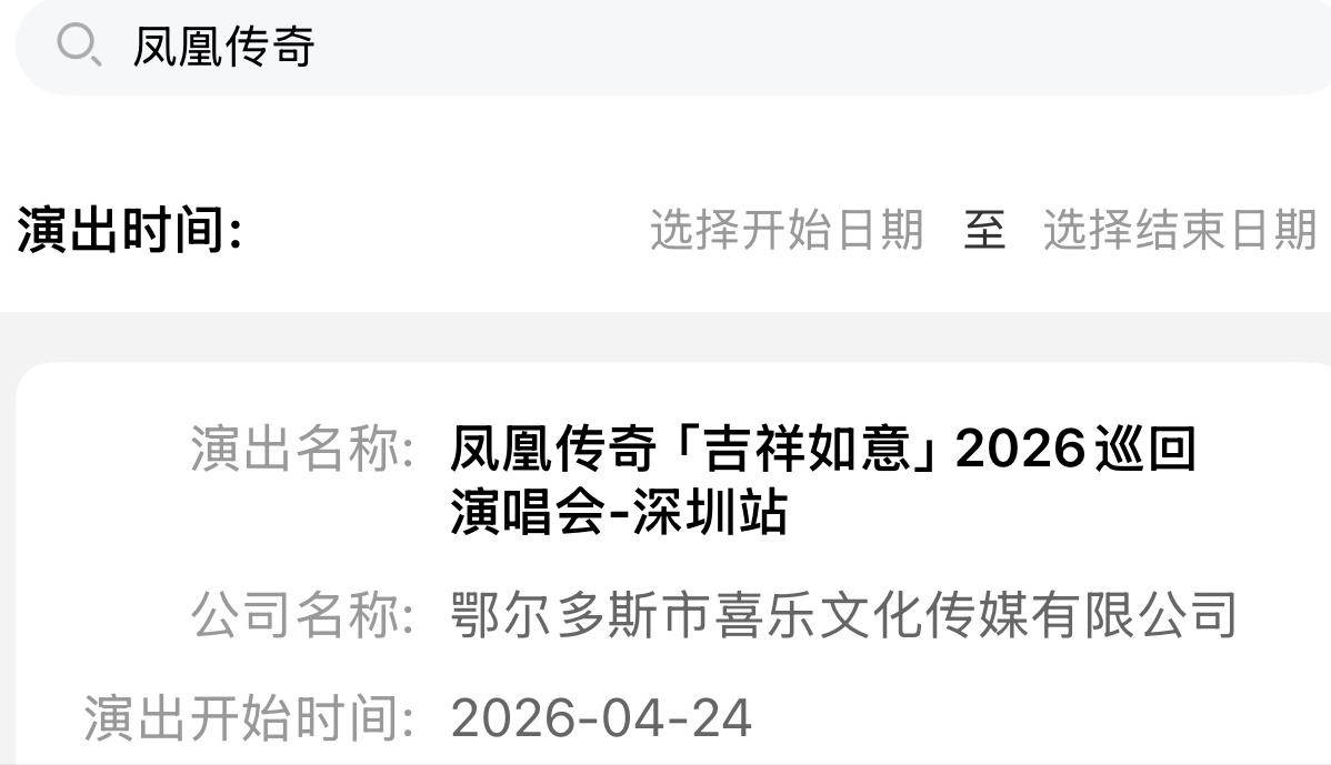 从票务网站的信息来看,凤凰传奇巡演的深圳站已经获批,他们将在4月24日到26日连唱三天。
