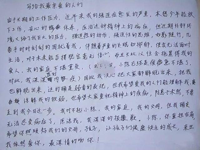 “伴随着严重的失眠和抑郁,使我无法生活,” “希望爱我的人们能够谅解我的软弱。”