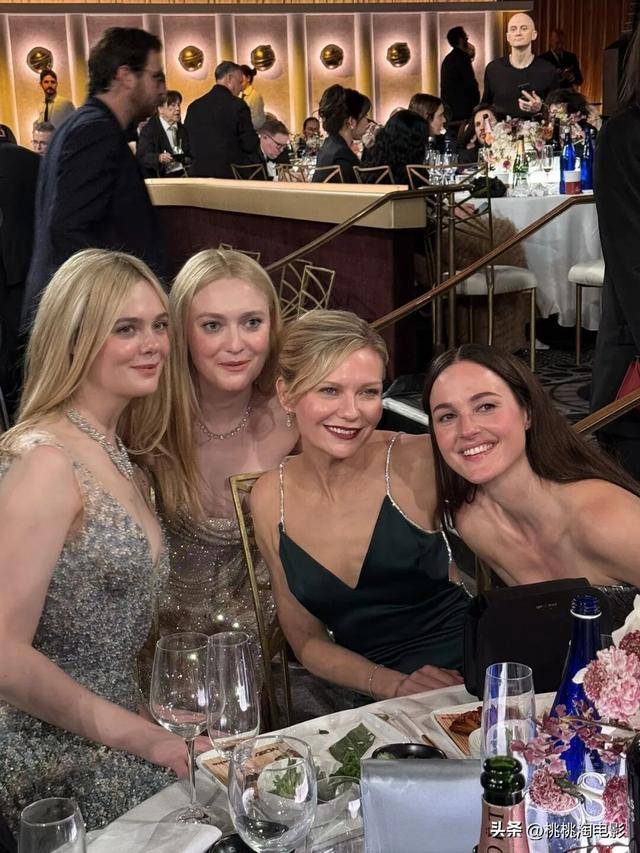 金球奖内场,范宁姐妹和邓斯特合影: