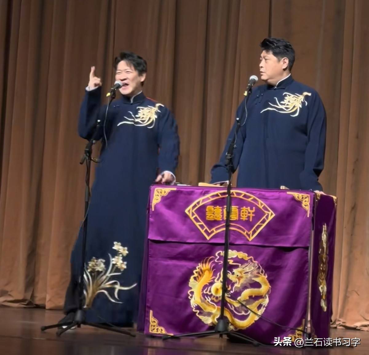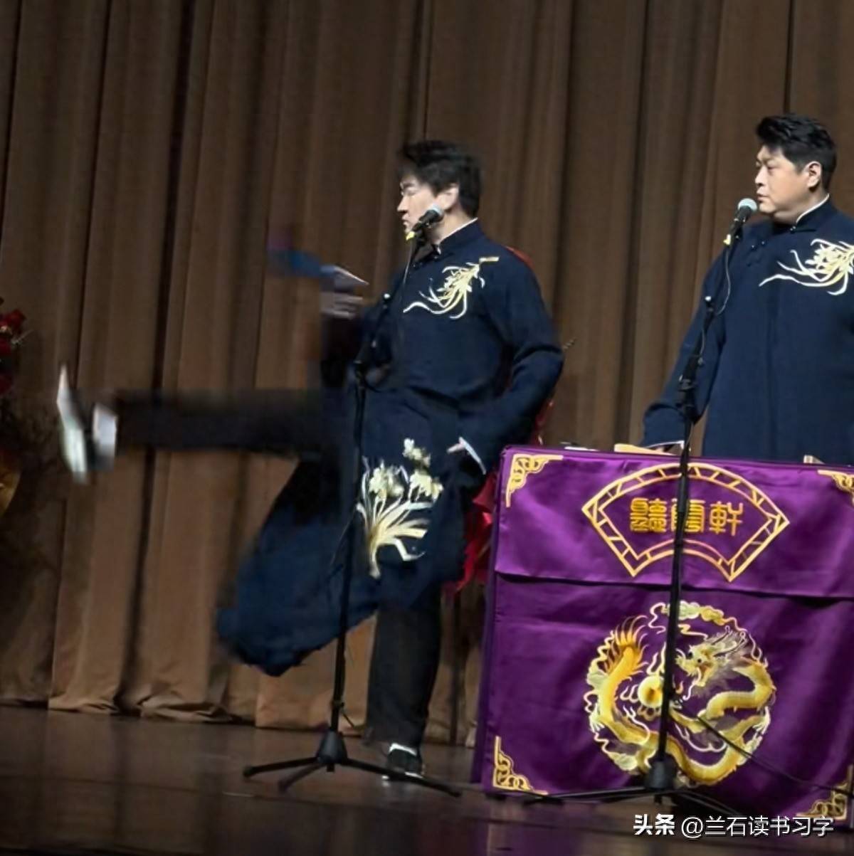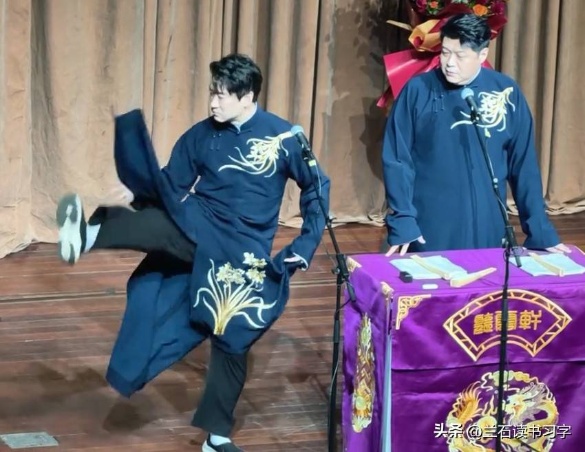 曹云金,曾经跟随『郭德纲』多年,的确从他那里学到了不小的真功夫。『郭德纲』的相声精髓、风格、甚至是他在台上的举手投足,都被曹云金学得惟妙惟肖,几乎没有任何差距。在所有『德云社』的弟子中,曹云金无疑是最像『郭德纲』的那一位。无论是语言的表达,还是表情的变化,甚至是动作的模仿,都做得几乎一模一样。尽管现在曹云金已不再是『德云社』的一员,尽管他已经与『郭德纲』逐渐疏远,甚至被逐出师门,但有些东西,一旦融入血液中,便难以抹去。 像踢大褂和扎一刀这样的经典招数,虽然『郭德纲』在台上已经很少再表演了,但它们却牢牢地印在了曹云金的表演中,成了他与观众互动时的独特符号,这也算是一种特殊的传承。对曹云金而言,这不仅仅是表演,更是一种他乐在其中的艺术表达。每次当他在舞台上踢大褂,不光是赢得了观众的掌声和笑声,自己也能从中找到乐趣,享受其中的喜悦与满足。朋友们,您说呢?