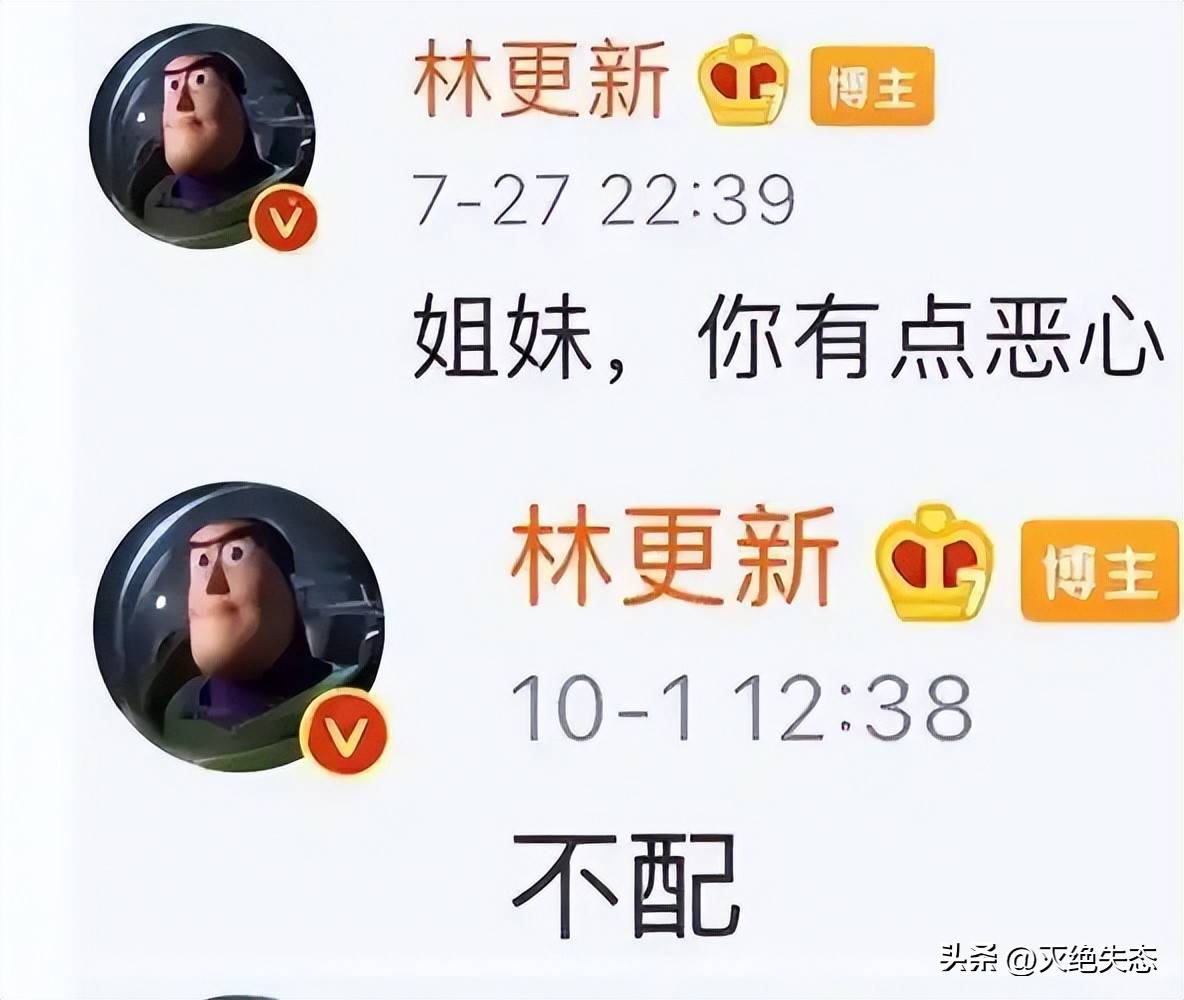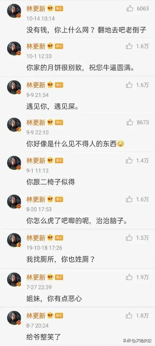 『林更新』对黑粉战绩斐然,据说曾经凌晨5点爬起来回复恶评,还称“包回复,我这嘴就没输过”。