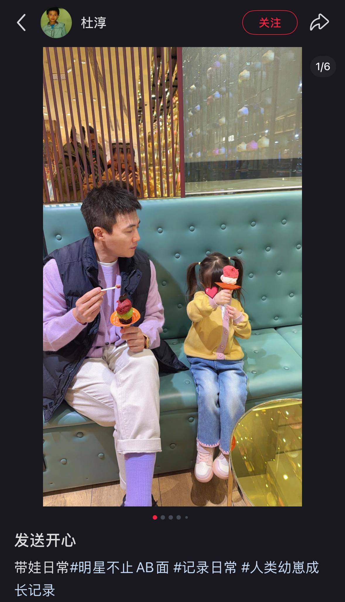 1月17日,演员『杜淳』更新个人动态,分享他的带娃日常,当天他带着女儿小蛋饺外出玩耍,父女俩抵达某商场后还吃了彩色冰激凌,隔着屏幕都被他们的幸福感所温暖到。
