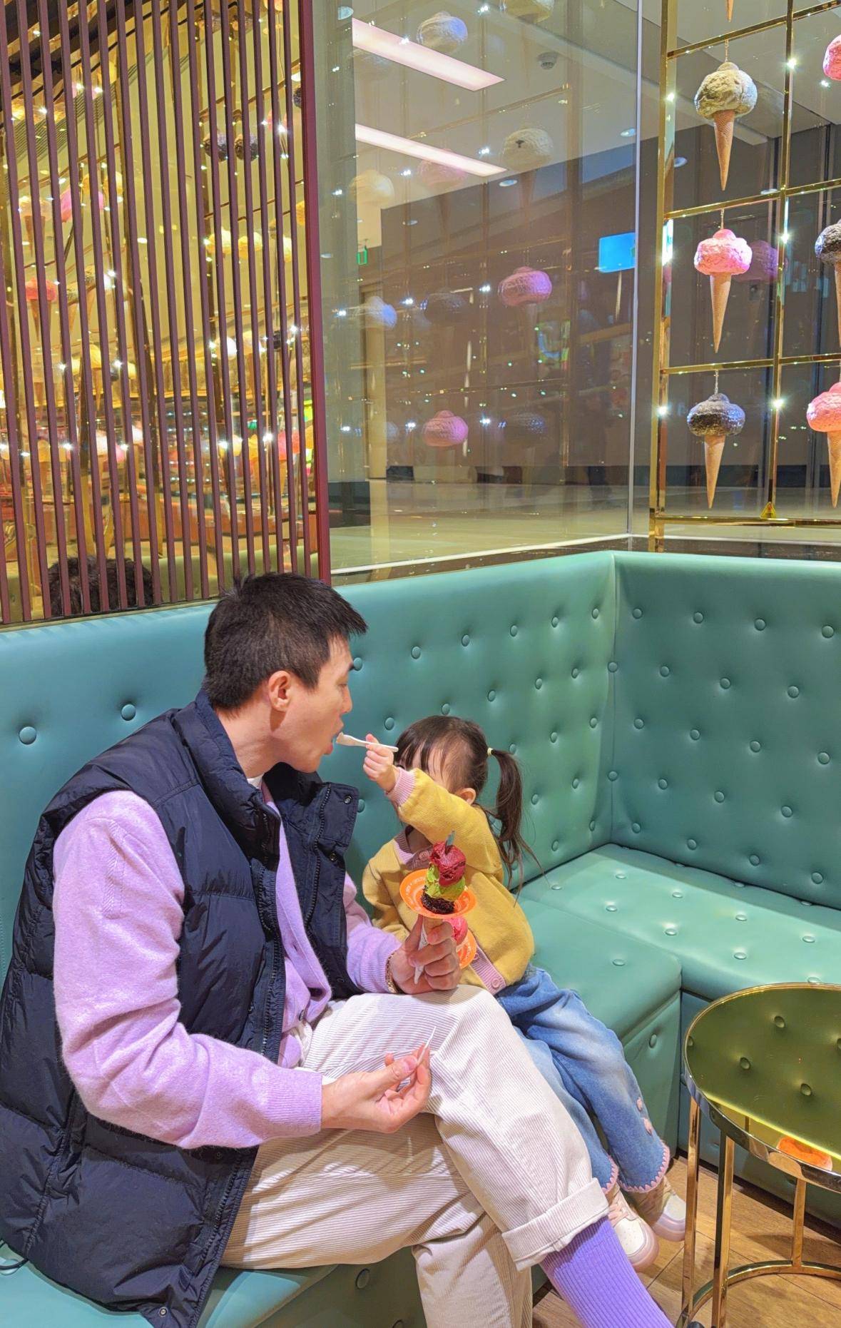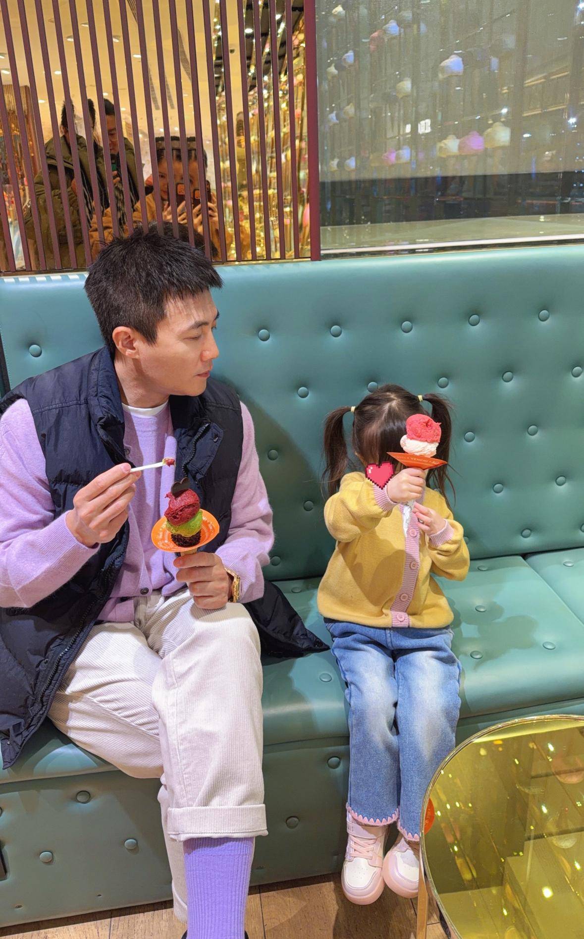 从『杜淳』公开的照片可见,他带着女儿小蛋饺到某商场闲逛,两人逛累了,便坐在沙发上休息,期间『杜淳』还给女儿买了彩色冰激凌,父女俩人手一个。