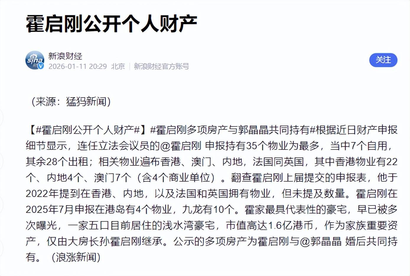 2026年1月14日,霍启刚与父亲霍震霆一同成为热搜的焦点!霍启刚满怀激动地发布了长文,庆祝父亲霍震霆荣获殊荣,他在文中写道,自己为父亲感到无比骄傲。