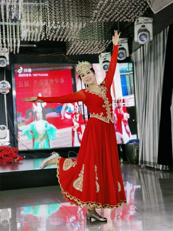 此外,华姐新疆舞蹈团韦老师团队的《我唱赞歌献祖国》、钵池山琴姐团队琴姐的独舞《心中的你》、雅雅与琴瑟和鸣的双人舞《马车夫之恋》等节目轮番上演,或深情款款,或热情似火,各具特色。淮安区新疆舞蹈团夏团长的独舞《心在路上》、郁青与陈霞的《把你留住》、牛海清与陆叶的《新疆美》、王秀与张长涛的水兵舞《今天是你的生日》等节目更是将汇演推向一个又一个高潮。欢乐在东方运河团队带来的《苹果香》展现了团队的风采,沈歌小朋友与美女奶奶同台对跳的《新疆舞曲》则尽显老少同乐的温情,赢得满堂喝彩。汇演尾声,在主持人万红霞的倡议下,自由随性的散跳接龙环节欢乐开启,大家尽情舞动,传递着对舞蹈的热爱与对新春的期盼。