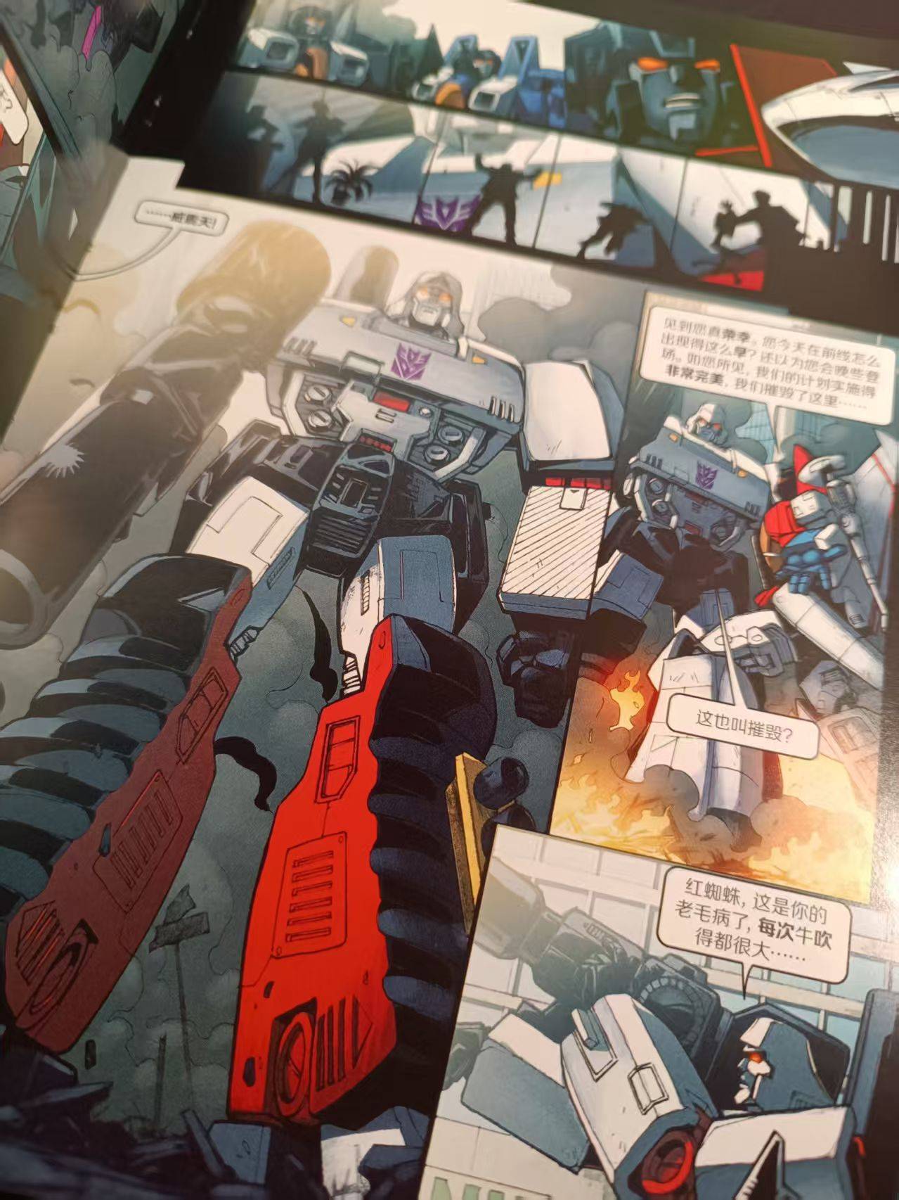 它们喊话人类,说是为了和平而来,还说自己是好人。可是眨眼间就火力全开,创飞所有人。随后空中小王子——威震天来了,红蜘蛛还在大言不惭的吹嘘它才是这些人类的主宰者!只有威震天知道,红蜘蛛每次牛吹得很大,但做起事来缩手缩脚的。