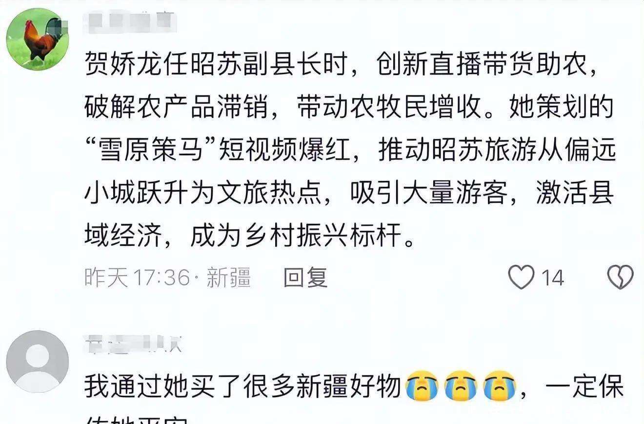 那天晚上,贺娇龙在医院抢救了几天,从11号一直到14号的晚上。最终,医生在晚上11点多宣布了结果。现场弥漫着一种沉重的氛围,朋友们和家人估计都觉得这一切来得太突然,完全没有准备。她才47岁,很多网友感叹,贺娇龙真的是太拼了,没想到最终因工作中的一场意外离世,真是太遗憾了。贺娇龙之所以能走到今天,正是凭借她那种实在的劲头。别看她是干部,直播时她充满干劲,言辞直白,做事比谁都上心。她带着大家在昭苏的草原雪地上游览,还帮农民把特产销售出去。曾经昭苏的农产品滞销,她就用直播一波一波地推销,农民的钱袋💰️子都鼓了。很多熟悉她的人说,这两年昭苏的旅游人气猛增,主要得益于她通过网络为家乡做宣传,效果显著。