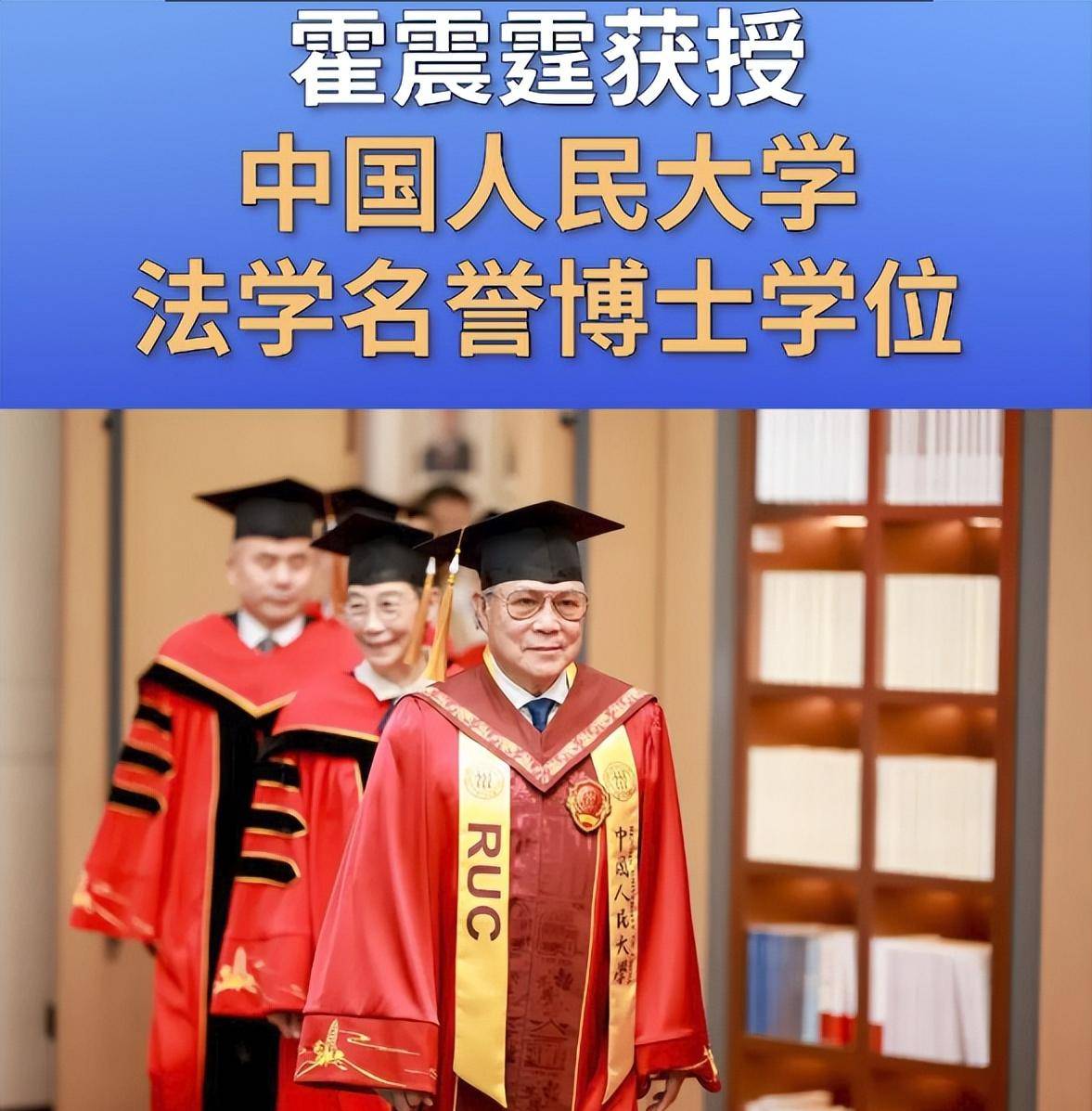 最近,霍家可谓是迎来了一连串的喜讯。霍启刚的晋升消息接连传出,职级更是颇为不凡,而『郭晶晶』也在低调中捐款支援灾区,展示了他们夫妇的社会责任感,这也让公众对这对豪门夫妇的敬意不断升温。更令人关注的是,79岁的霍震霆再次突破了自我,他荣获了人大名誉博士学位,成为舆论的焦点。 此次的荣誉,标志着霍震霆和儿媳『郭晶晶』不仅是家族的一部分,而且也正式成为了中国人民大学的校友。颁奖典礼当天,霍震霆身穿一袭红色博士服,精神矍铄。站在台上的他,尽显自信与风采,毫无一丝老态。小儿媳南风也在场为他庆祝,这也是她首次在霍家的重要场合公开亮相。