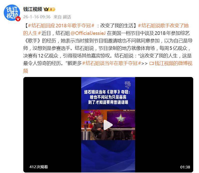 据1月16日报道,结石姐Jessie J在近日的海外节目中回忆起2018年那次中国之旅,突然一句我以为是去当导师的让这段往事迅速冲上热搜。原来,当年《歌手》节目组邀请她时,她并没有多想,爽快答应了。她心里盘算的不过是去当个表演嘉宾或评委,没想到到了现场才发现——自己竟然是来比赛的选手!这一发现让她当时震惊不已,而这种误打误撞的经历,最终也成为了她人生中最不可思议的奇遇。 更让结石姐感到意外的是节目背后的庞大规模:每周有5亿人收看,总决赛时的观众更是达到12亿。她将这一段经历形容为改变了我的人生,并表示它是她曾经历过的最震撼的一次奇遇。那时的她完全没有预料到,这场看似简单的节目,竟然会对她的职业生涯产生如此巨大的影响。