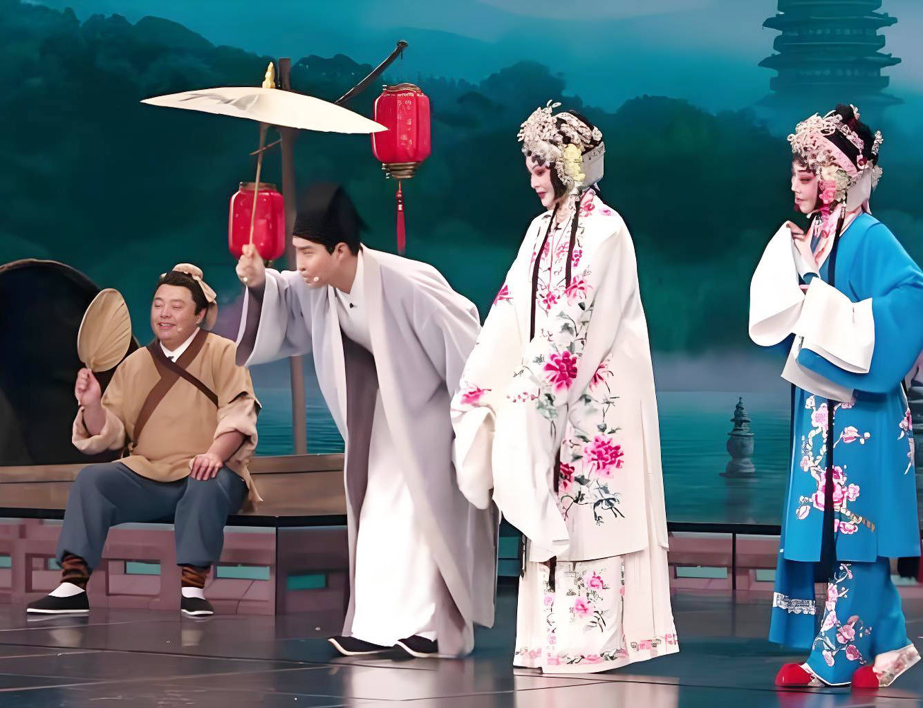 《借伞》以一把西湖绸伞,巧妙串联了京剧、粤剧、川剧、越剧,让观众重温经典之作。