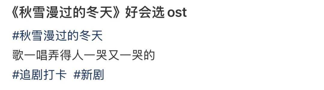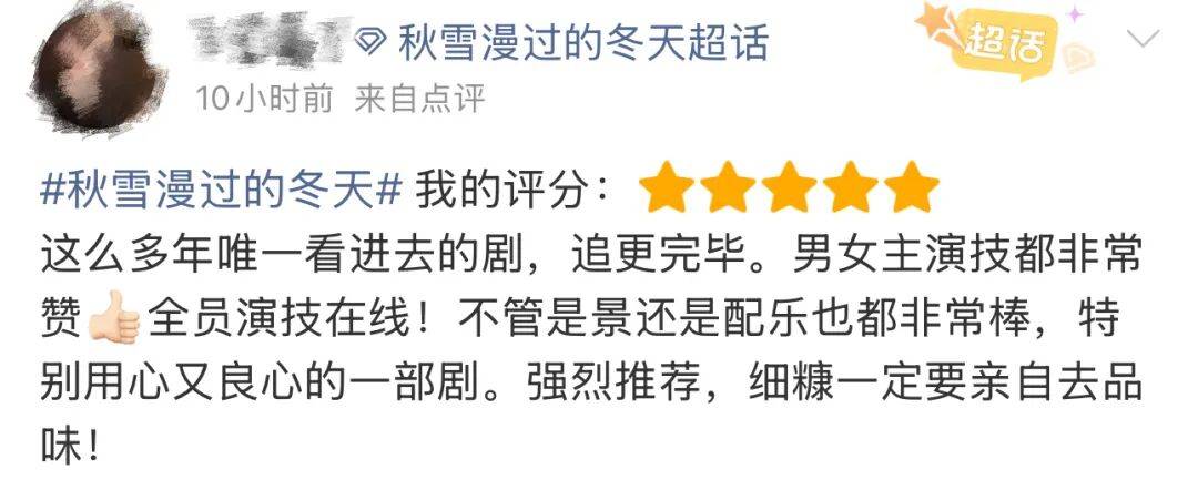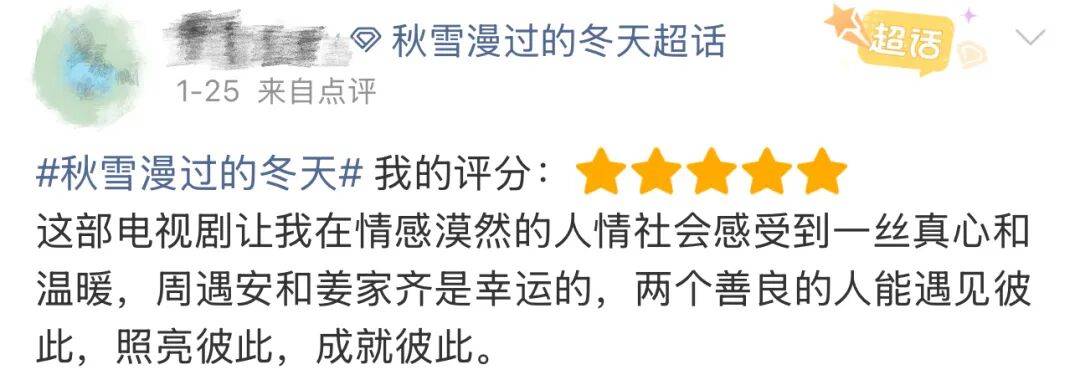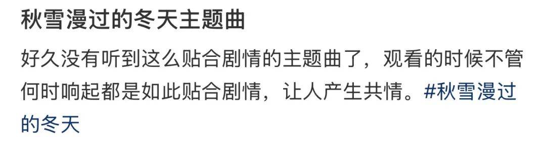 目前,《秋雪漫过的冬天》已经进入了收官阶段,但一部好作品的生命力,恰在于荧幕暗去后的绵长余韵。