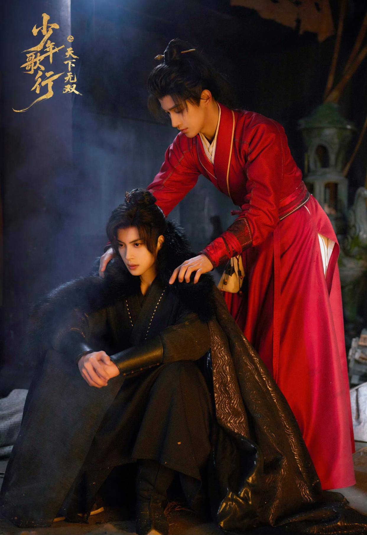 海报以水墨晕染为底色,巧妙地融入了鎏金线条,完美融合了传统美学与浓厚的武侠氛围。林泽辉饰演的木归,一袭墨色劲装,剑眉星目,眉宇间流露出少年独有的孤勇;蔡正杰饰演的雷灵泽,红衣似火,举手投足间尽显世家子弟的桀骜不驯与坦荡胸怀。曾雪瑶饰演的叶止心,则为这段充满刀光剑影的旅程增添了一抹温柔与变数。两位少年侠客从萍水相逢到携手并肩,他们既有少年人意气风发的侠义之情,也有面对江湖阴谋时的困惑与抉择。