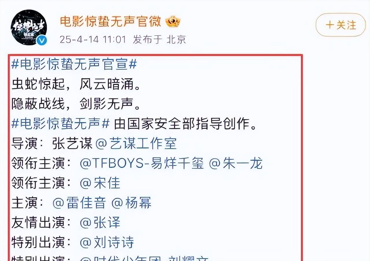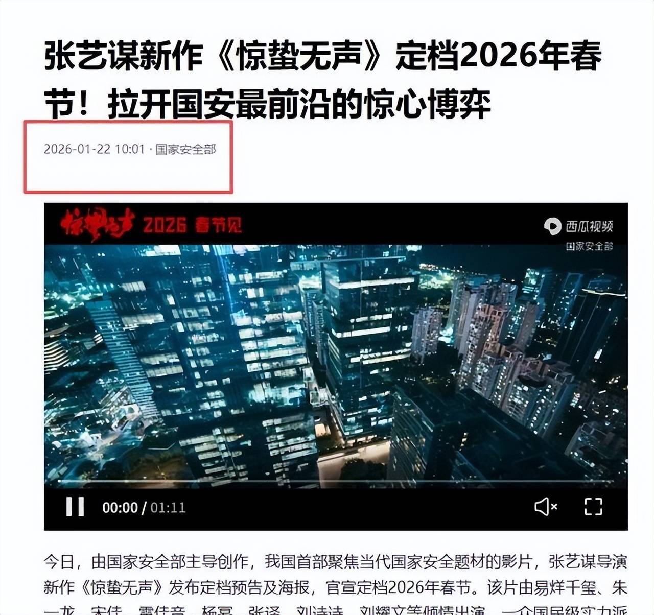 娱乐fjmyhfvclm1阅读 国家安全部,突然高调地点名宣传了75岁的导演『张艺谋』。这一举动实际上释放了三个极为强烈的信号。细细回味其中的意味,不禁让人感叹,当年『巩俐』对老谋子的评价,简直成了预言,丝毫没有错。首先,隐秘战线的硝烟,已经悄然蔓延到光鲜亮丽的聚光灯下。这次『张艺谋』的新片《惊蛰无声》定档在这个关键时刻,背后必有深意。别轻易认为这只是一部为了春节档凑热闹的商业片,那样的话,不仅低估了老谋子的智慧,也小看了国家安全部的视野。