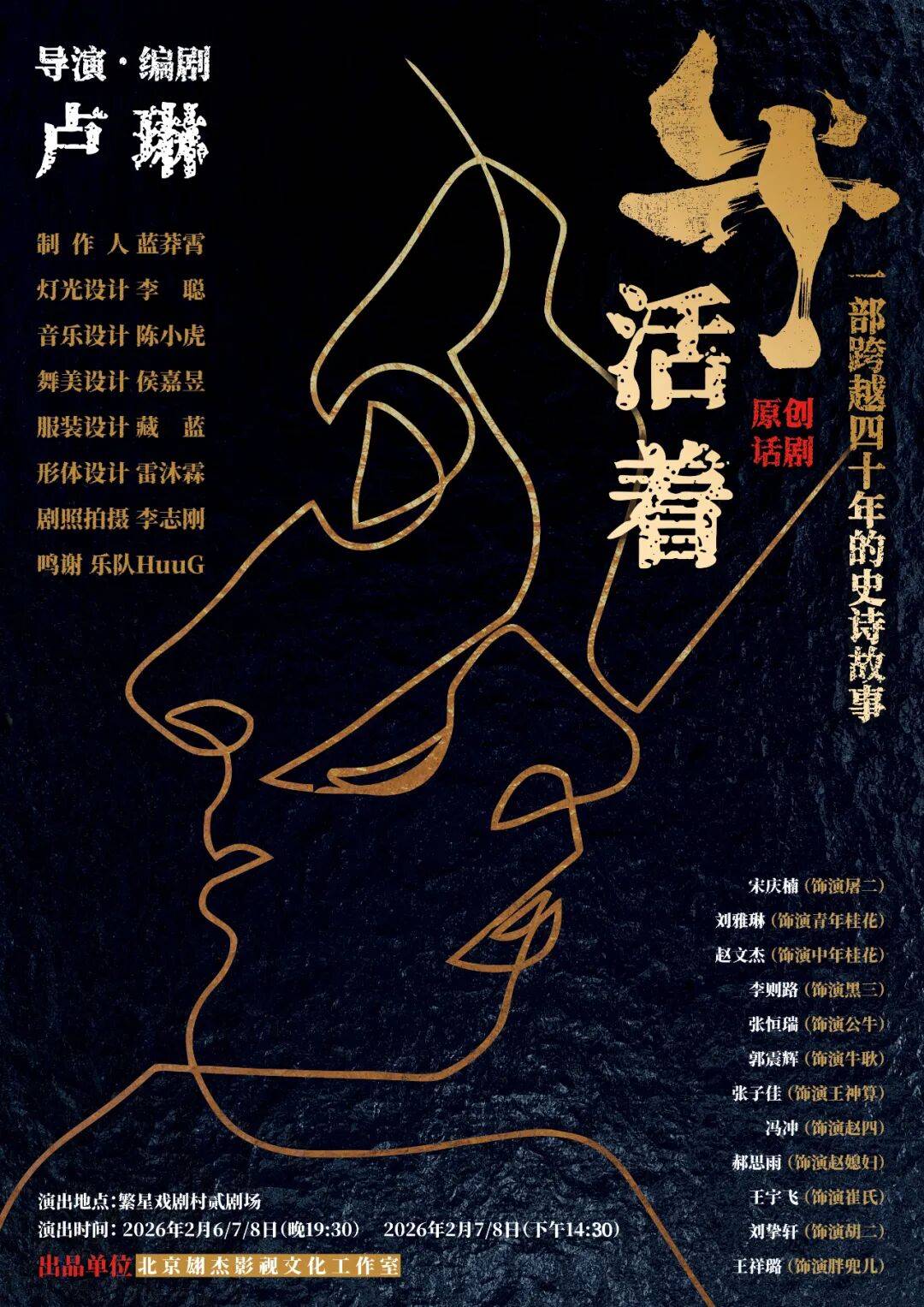 卢琳导演:在2012年的第一版牛活着中,屠二最终变成了屠夫,所以牛活着的主题指向的是个体表达。但在2026年这版中,从表层的意义的让牛,活下来,从文本上,我需要用典型的历史环境去强化众人对牛的迫害,所以,选取了五个典型的历史时间节点。在交代年代转换上有一定的难度,但这五个年代的跨度给观众全景式的展现了,由于人的争斗而指向杀牛。所以,牛才是这部戏的男主角🎭️。只是牛作为人类的精神象征在不同的时代里活了下来,但牛活着—人的世界崩塌了。那么牛—真的存在吗?这是牛的意向化处理的初衷,也是牛作为第一视角的旁观审视,他在看这个故事。时间的流转通过故事情节会逐一的展现。精神内核是力量,这无疑是人与牛的不谋而合。