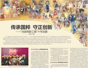 2015年,京剧电影《状元媒》获中美电影节年度最佳戏曲电影奖,《霸王别姬》(3D版)在美国获2015创意艺术奖·金卢米埃尔奖。《霸王别姬》还是第一部在举行奥斯卡颁奖典礼的好莱坞杜比剧院举行首映式的中国电影,杜比公司执行副总裁安迪特意带13岁的儿子一同观看:“这是非常棒的电影,艺术表现力令人印象深刻,让我在第一时间感受到京剧和中国文化的魅力。”(2016年4月14日《北京日报》1版,《弘扬国粹有新招 京剧电影驻场放》)《龙凤呈祥》《秦香莲》《萧何月下追韩信》《贞观盛事》《捉放曹》……截至2025年,京剧电影工程已摄制完成21部京剧经典影片,其中多部获国际大奖,为中国电影饮誉世界贡献力量。(2025年7月15日《北京日报》7版,《传承国粹 守正创新》)