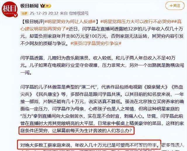 闫学晶这次的事件,简直像是打破了一个蜂巢,满城风雨。你看看,她刚在朋友圈发了道歉,结果『抖音』上的粉丝像开了闸一样,一天掉了八万多人。掉的不是数据,是人心。品牌方反应更快,东北大酱的代言一秒钟黄了,家电品牌也立马宣布终止2024年的合约,白纸黑字,一点余地都不给。这一巴掌打得真是响亮。最狠的要数《刘老根6》,听说后期的剪辑师连夜加班,把她的戏份能删的都删了。春节档播出的时候?她连个影子都看不见。从『直播间』里那句轻飘飘的何不食肉糜,到如今代言撤掉、戏份被剪,短短不到半个月,事件蔓延得让人眼花缭乱,仿佛整个世界都因为她的一句话而倾斜。 回头捋捋这条时间线,真是每一步都踩到了地雷。12月末那番话,拖到1月初才开始危机公关,第一招居然是让团队大规模举报网上的负面内容。好家伙,这不等于火上浇油吗?原本网友们只是随便发发牢骚,你这一举报,反倒把风头引到自己身上了。等到1月7号官媒出面点评,1月10号她的账号功能被限制,一切已经太晚了。紧接着,她在朋友圈发的道歉,看上去就像被逼到绝路的无奈回应,诚意有多少,大家心里都有数。