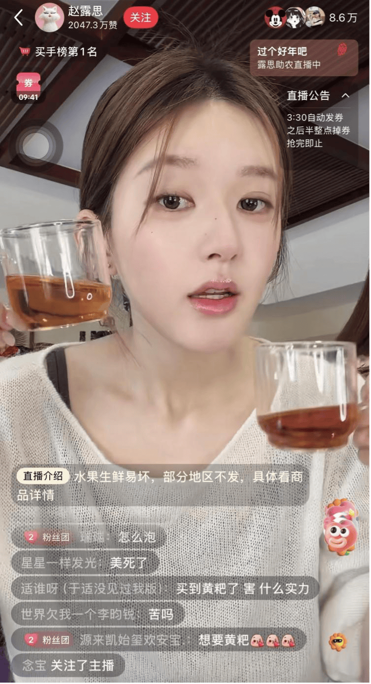 很快,这款葛根茶迅速被卖爆了,直播后月销量立刻增至数千,该款葛根茶品牌的负责人透露,『赵露思』直播当天的订单量是他们过去七八年的总和。