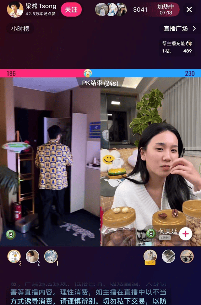 “总算出来自己挣钱了”“口条确实适合干直播”。有意思的是,何美延的丈夫梁淞和婆婆也出现了在『直播间』。几天前,这对夫妻还高调合体PK,唱歌跳舞,打情骂俏,梁淞左一句“老婆辛苦了”,右一个宠溺眼神,互动非常甜蜜,『直播间』人数瞬间破万,礼物🎁刷个不停,据说当晚收入超过五十万。