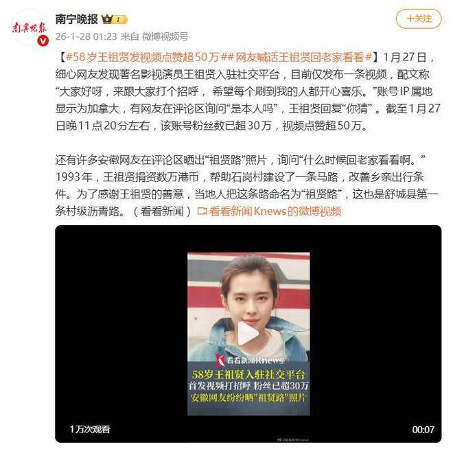 从香港电影的黄金时代到如今在加拿大的隐居岁月,再到她顺应内心的变化,轻松入驻短视频与大众问好,『王祖贤』的人生轨迹一直带着一种不拘一格的洒脱。此次入驻短视频平台,不是复出,更像是一场老友之间的隔空叙旧。网友们追捧的,不仅仅是她依然保养得宜的容颜,更是那份随着时光沉淀出来的通透与优雅——一种随心而活的从容。一条视频,联结了屏幕前亿万观众的情感,也照亮了地图上那条名为感恩的祖贤路。或许女神从未远离,她只是以自己最想要的方式,活成了最真实的自己。