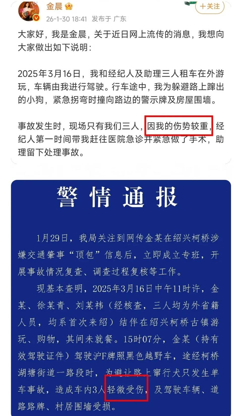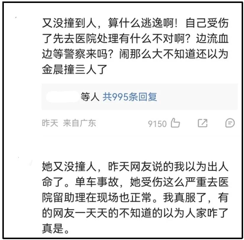 事故后第一时间,『金晨』没留在现场,而是——和经纪人一起直接去了上海医院,说是“脸伤严重,紧急就诊”,助理留下处理现场。
