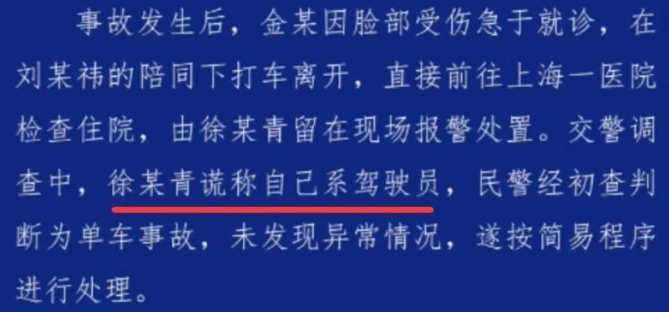 结果几天后,警方认定的“驾驶员”居然是助理徐某某,整个事故顺顺利利被按了简易程序处理。