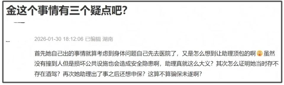 『金晨』这次,警方给出的答案是:没有骗保,不构成逃逸,而只是助理误报。